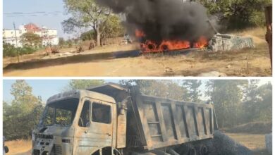 VIDEO बिलासपुर: हाईटेंशन तार की चपेट में आने से हाईवा में लगी भीषण आग…यूनिवर्सिटी परिसर में बड़ा हादसा,