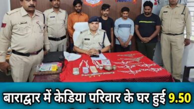 बाराद्वार में केडिया परिवार के घर हुई 9.50 लाख रुपए की चोरी का हुआ खुलासा….आदतन चोर ने साथियों के साथ रेकी कर दिया था घटना को अंजाम, चोरी का माल खपाने वाले 2 सोनार भी गिरफ्तार