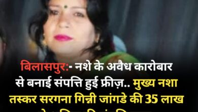 बिलासपुर:- नशे के अवैध कारोबार से बनाई संपत्ति हुई फ्रीज़.. मुख्य नशा तस्कर सरगना गिन्नी जांगडे की 35 लाख से अधिक की संपत्ति जप्त,