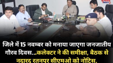 जिले में 15 नवम्बर को मनाया जाएगा जनजातीय गौरव दिवस…कलेक्टर ने की समीक्षा, बैठक से नदारद रतनपुर सीएमओ को नोटिस,