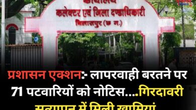प्रशासन एक्शन:- लापरवाही बरतने पर 71 पटवारियों को नोटिस….गिरदावरी सत्यापन में मिली खामियां,