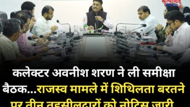 रमेश राजपूत बिलासपुर – कलेक्टर अवनीश शरण ने राजस्व मामले में शिथिलता बरतने पर बिलासपुर तहसीलदार मुकेश देवांगन, रतनपुर तहसीलदार…
