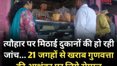 त्यौहार पर मिठाई दुकानों की हो रही जांच… 21 जगहों से खराब गुणवत्ता की आशंका पर लिये सेम्पल,