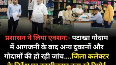 प्रशासन ने लिया एक्शन:- पटाखा गोदाम में आगजनी के बाद अन्य दुकानों और गोदामों की हो रही जांच….जिला कलेक्टर के निर्देश पर तहसीलदार बना रहे रिपोर्ट,