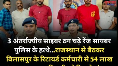 3 अंतर्राज्यीय साइबर ठग चढ़े रेंज सायबर पुलिस के हत्थे…राजस्थान से बैठकर बिलासपुर के रिटायर्ड कर्मचारी से 54 लाख 30 हजार रुपए की ठगी को दिए थे अंजाम