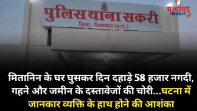 भुवनेश्वर बंजारे बिलासपुर – मितानिन के घर में दिनदहाड़े अज्ञात व्यक्ति द्वारा जमीन के दस्तावेज और कैश सहित अन्य कीमती…