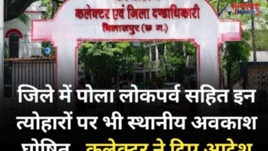 जिले में पोला लोकपर्व सहित इन त्योहारों पर भी स्थानीय अवकाश घोषित.. कलेक्टर ने दिए आदेश