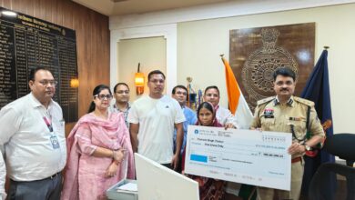 पुलिस आरक्षक की सड़क हादसे में हुई थी मौत…1 करोड़ का बीमा दावा एसएसपी रजनेश सिंह ने परिजनों को सौपा चेक,