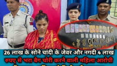 26 लाख के सोने चांदी के जेवर और नगदी 4 लाख रुपए से भरा बैग चोरी करने वाली महिला आरोपी गिरफ्तार…. पुलिस को मिली बड़ी सफलता