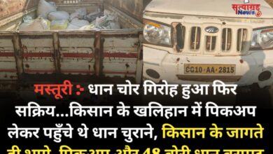 मस्तूरी :- धान चोर गिरोह हुआ फिर सक्रिय…किसान के खलिहान में पिकअप लेकर पहुँचे थे धान चुराने, किसान के जागते ही भागे, पिकअप और 48 बोरी धान बरामद