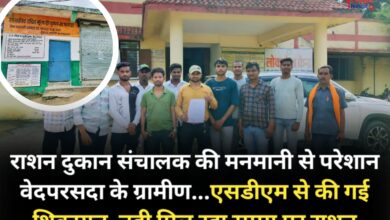 राशन दुकान संचालक की मनमानी से परेशान वेदपरसदा के ग्रामीण…एसडीएम से की गई शिकायत, नही मिल रहा समय पर राशन