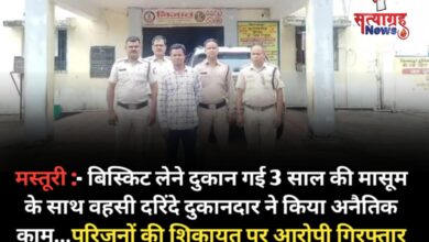 मस्तूरी :- बिस्किट लेने दुकान गई 3 साल की मासूम के साथ वहसी दरिंदे दुकानदार ने किया अनैतिक काम…परिजनों की शिकायत पर आरोपी गिरफ्तार