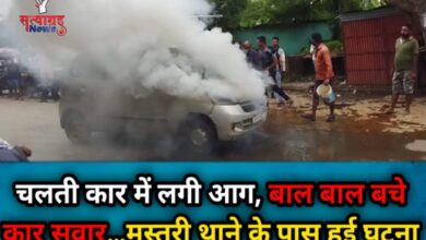 चलती कार में लगी आग, बाल बाल बचे कार सवार…मस्तुरी थाने के पास हुई घटना, देखिए वीडियो