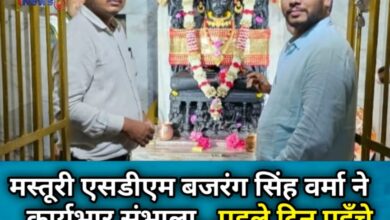 मस्तूरी एसडीएम बजरंग सिंह वर्मा ने कार्यभार संभाला… पहले दिन पहुँचे माँ डिडनेश्वरी के दर्शन करने, कहा शासन की योजनाओं का क्रियान्वयन पहली प्राथमिकता