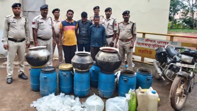सीपत पुलिस की बड़ी कार्रवाई: ग्राम खैरा लगरा में दबिश, तीन आरोपी गिरफ्तार, 58 लीटर अवैध महुआ शराब और 2 क्विंटल लहान जब्त,