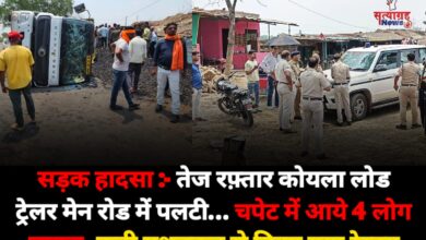 VIDEO: सड़क हादसा :- तेज रफ़्तार कोयला लोड ट्रेलर मेन रोड में पलटी… चपेट में आये 4 लोग घायल, कड़ी मशक्कत से किया गया रेस्क्यू