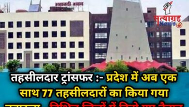 तहसीलदार ट्रांसफर :- प्रदेश में अब एक साथ 77 तहसीलदारों का किया गया तबादला….विभिन्न जिलों में किये गए तैनात