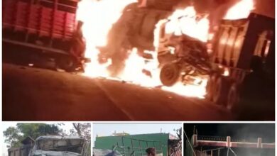VIDEO: सड़क हादसा :- माजदा और ट्रेलर वाहन में आमने सामने हुई टक्कर… दोनो वाहनों में लगी आग माजदा चालक और हेल्पर की जिंदा जलकर हुई मौत, ट्रेलर चालक फरार