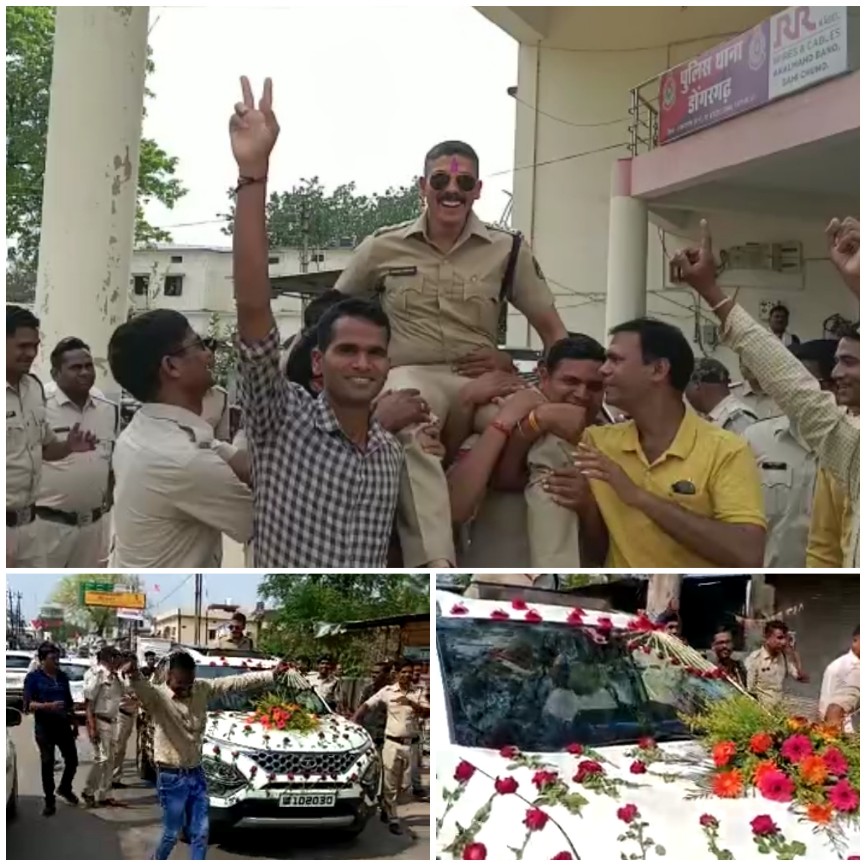 बिलासपुर – राजनांदगांव जिले के डोंगरगढ़ में पदस्थ पूर्व थाना प्रभारी का ट्रांसफर बिलासपुर होने के बाद पुलिसकर्मी इंस्पेक्टर साहब को धूम धाम से विदाई दी, जिसका वीडियो सामने आने के बाद खबर आ रही है की जिले के आईजी ने वर्दी पहनकर रोड-शो करवाने वाले इंस्पेक्टर सुरेन्द्र स्वर्णकार को सस्पेंड कर दिया है। उधर गाजे बाजे के साथ साहब की विदाई हुई और इधर बिलासपुर पहुंचते ही आईजी बद्रीनारायण मीणा ने उन्हें सस्पेंड करते हुए लाइन अटैच कर दिया है।