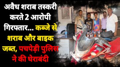 अवैध शराब तस्करी करते 2 आरोपी गिरफ्तार… कब्जे से शराब और बाइक जब्त, पचपेड़ी पुलिस ने की घेराबंदी