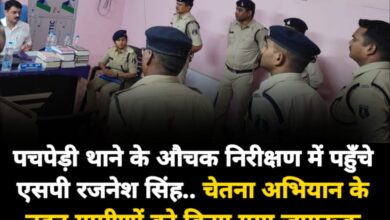 पचपेड़ी थाने के औचक निरीक्षण में पहुँचे एसपी रजनेश सिंह.. चेतना अभियान के तहत ग्रामीणों को किया गया जागरूक