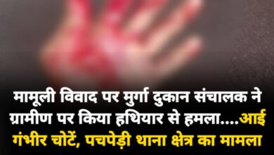 मामूली विवाद पर मुर्गा दुकान संचालक ने ग्रामीण पर किया हथियार से हमला….आई गंभीर चोटें, पचपेड़ी थाना क्षेत्र का मामला