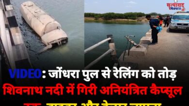 VIDEO: जोंधरा पुल से रेलिंग को तोड़ शिवनाथ नदी में गिरी अनियंत्रित कैप्सूल ट्रक, ड्राइवर और हेल्पर लापता