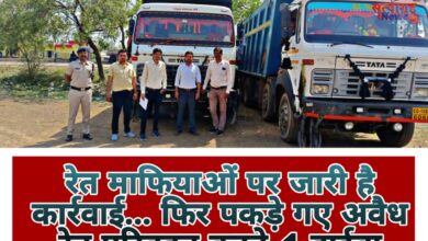 रेत माफियाओं पर जारी है कार्रवाई… फिर पकड़े गए अवैध रेत परिवहन करते 4 हाईवा, पचपेड़ी क्षेत्र में हुई छापेमारी