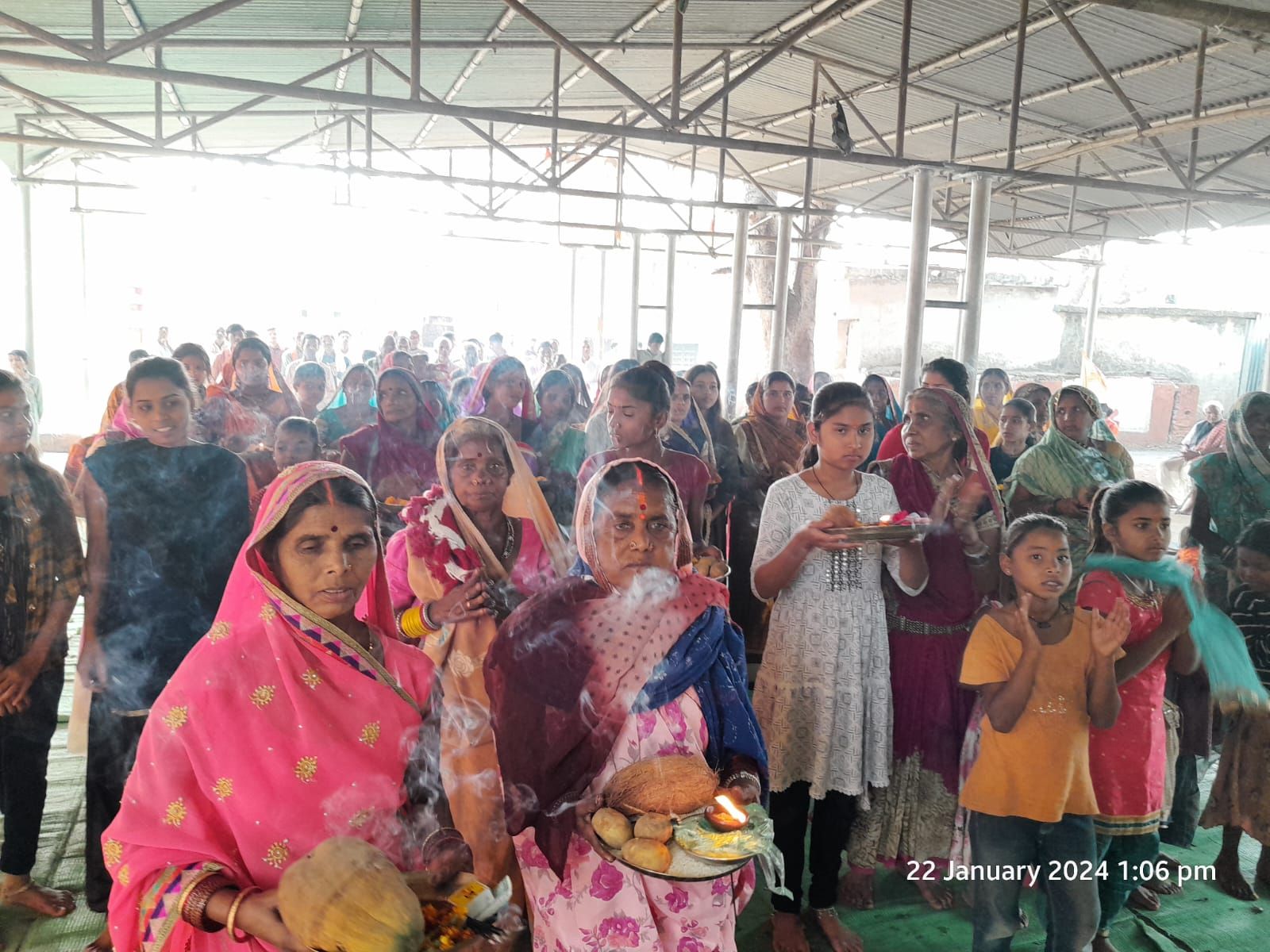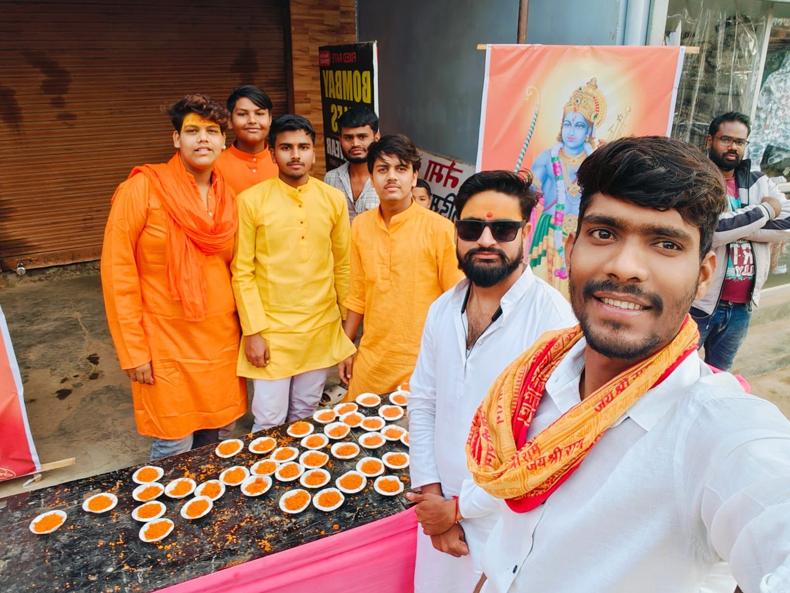 ठाकुरदेव चौक में हनुमान चालीसा पाठ के बाद भगवान श्रीराम की आरती की गई साथ ही प्रोजेक्टर से अयोध्या के कार्यक्रम को लाइव दिखाया गया।