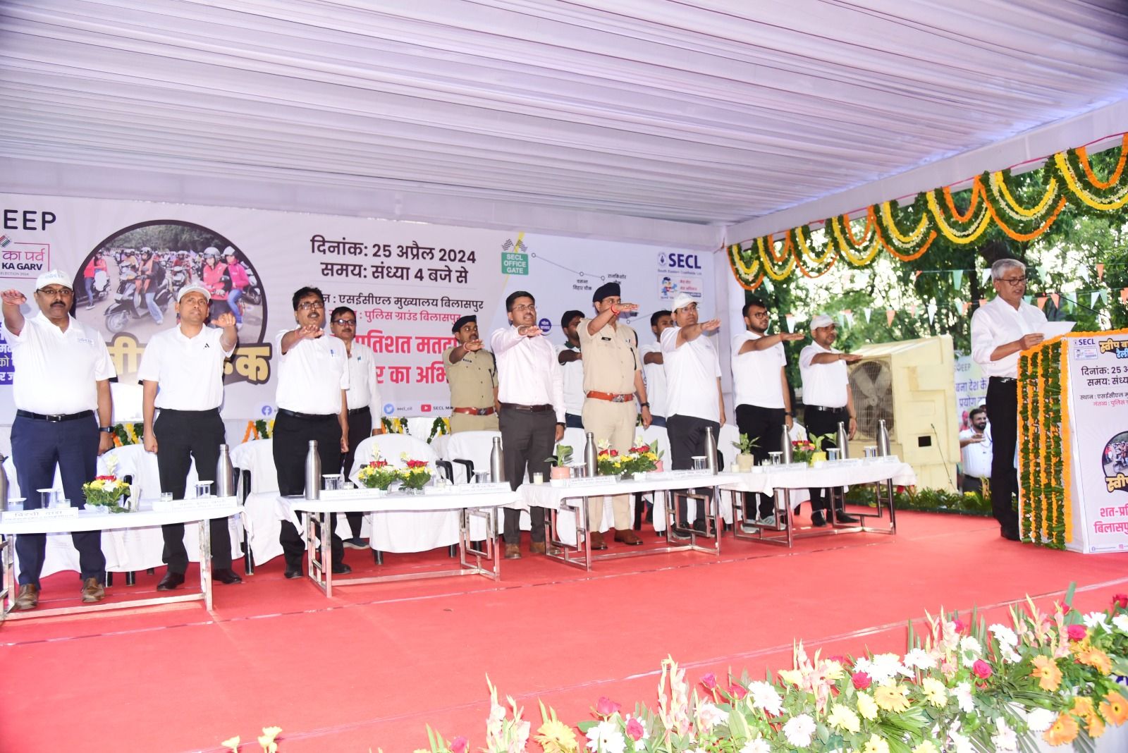 बाईक रैली को एसईसीएल के सीएमडी डॉ. प्रेम सागर मिश्रा ने हरी झंडी दिखाकर रवाना किया। कार्यक्रम के दौरान सभी ने लोकसभा निर्वाचन सहित अन्य निर्वाचनों मेें अपने मताधिकार का शत-प्रतिशत उपयोग करने की शपथ ली। इस अवसर पर नगर निगम कमिश्नर अमित कुमार,