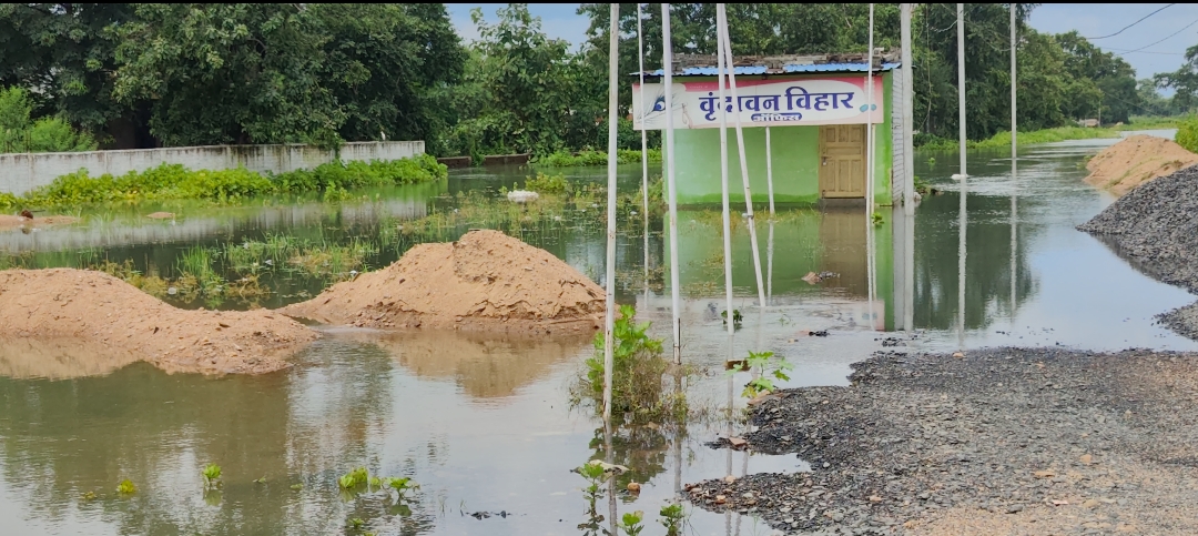 जिसके कारण किसान के खेत में लगे धान सड़ने के कगार पर पहुंच गया है। वही मेन रोड में संचालित अक्षय एग्रो राइस मिल में 3 फिट पानी घुस गया है जिससे राइस मिल में रखा लाखो का धान,चावल,भूसा एवं प्रांगण में रखे मशीनरी सामान खराब हो गया है। बताया जा रहा है कि नियमानुसार कालोनाइजर एक्ट के तहत सभी औपचारिकता पूरा करने के बाद जमीन की खरीदी बिक्री होनी चाहिए, लेकिन बिना पंजीयन के ही न केवल आवासीय कालोनी विकसित हो रहे हैं बल्कि खेत-खलिहान का आवास के रूप में धड़ल्ले से अवैध प्लाटिंग भी हो रही है। ऐसे में जिला प्रशासन की कुंभ करणी नींद कब खुलती है यह देखने वाली बात होगी!