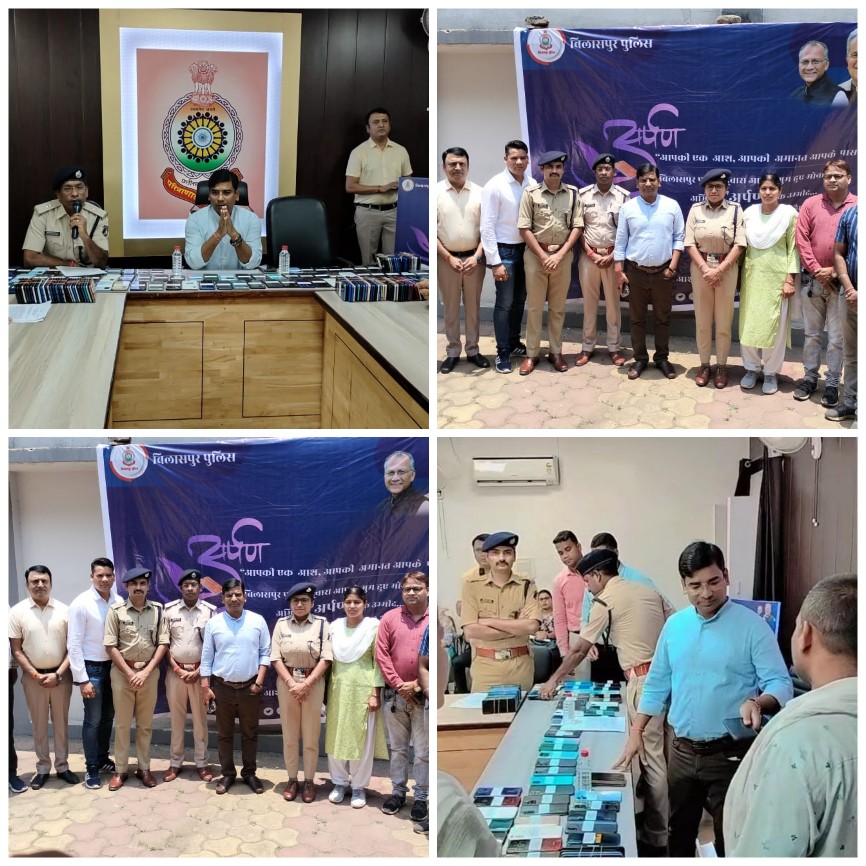 बिलासपुर – जिले के विभिन्न थाना क्षेत्रो में प्राप्त मोबाईल गुमने की शिकायत को गम्भीरता से लेते हुये पुलिस अधीक्षक बिलासपुर संतोष कुमार सिंह (भा.पु.से.) द्वारा प्राप्त शिकायतों के आधार पर गुमे हुये मोबाईल के प्रार्थीयो की सुची तैयार कर तलाश करने अतिरिक्त पुलिस अधीक्षक शहर राजेन्द्र कुमार जायसवाल एवं अतिरिक्त पुलिस अधीक्षक ग्रामिण राहुल देव शर्मा एवं नगर पुलिस अधीक्षक संदीप पटेल (भा.पु.से.) के निर्देशन में