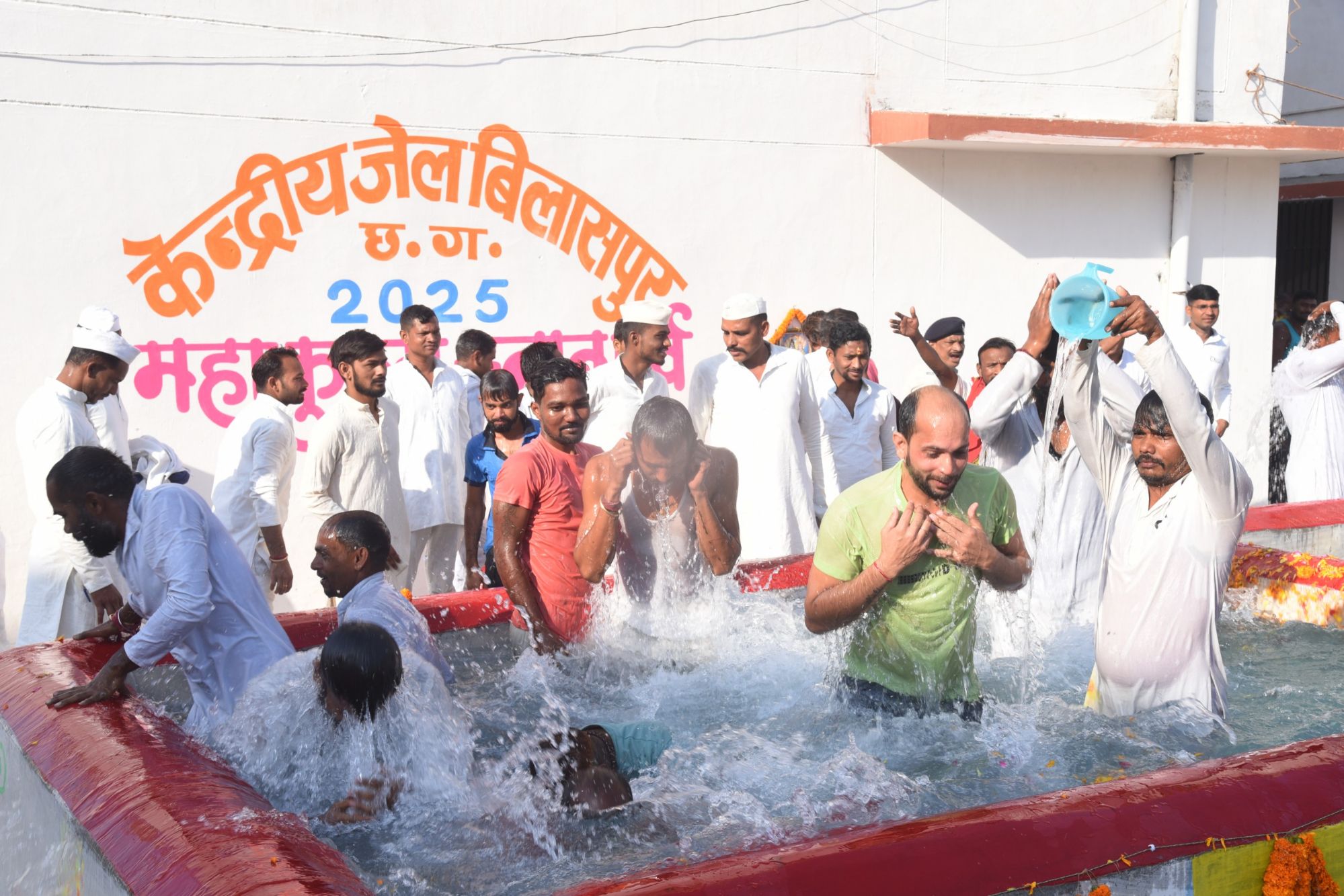 मुख्यमंत्री विष्णुदेव साय एवं उप मुख्यमंत्री विजय शर्मा के निर्देश पर जेल में बंद कैदियों ने पहली बार आध्यात्मिक स्नान का आनंद उठाया। बिलासपुर केन्द्रिय जेल में बंद करीब दो हजार कैदियों ने हर-हर गंगे की जप के साथ डुबकी लगाई। केन्द्रीय जेल में दो दिन पहले प्रयागराज से पहुंचे गंगा जल को पूजा- अर्चना कर विधि-विधान से जेल की चहार दीवारियों के भीतर लाया गया। कैदियों की भजन मण्डली ने जेल के मुख्य द्वार से गंगा जल को सुन्दरता से सजायी गई मटकियों में रख कर टंकियों और अन्य कैदियों तक पहुंचाया।