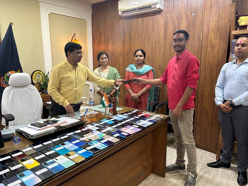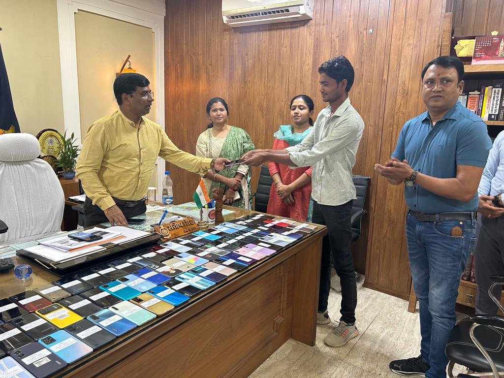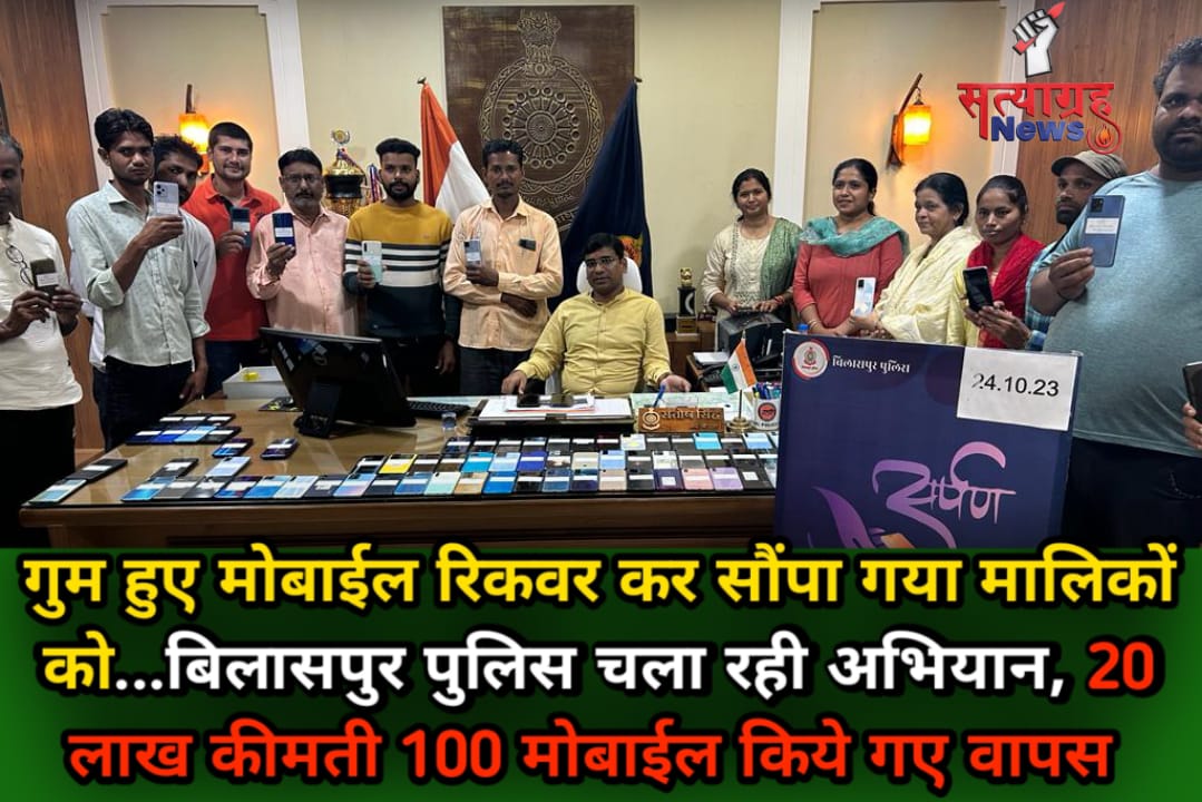 बिलासपुर – दशहरा के शुभ अवसर पर पुलिस अधीक्षक बिलासपुर संतोष सिंह द्वारा गुम हुए 100 नग मोबाइल उनके मालिकों को लौटाया गया , दुर्गा पूजा दशहरा के अवसर पर अपना गुम मोबाइल वापस पाकर मोबाइल मालिक जहां बिलासपुर पुलिस को धन्यवाद दे रहे थे,वहीं इसे माता रानी का आशीर्वाद मानकर माता रानी के प्रति भी नतमस्तक थे । अपने गुम हुए मोबाइल वापस पाने की आस छोड़ चुके मोबाइल मालिकों को जब पुलिस अधीक्षक संतोष सिंह द्वारा मोबाइल वापस लौटाया गया तब उनके चेहरे की खुशी देखने लायक थी,
