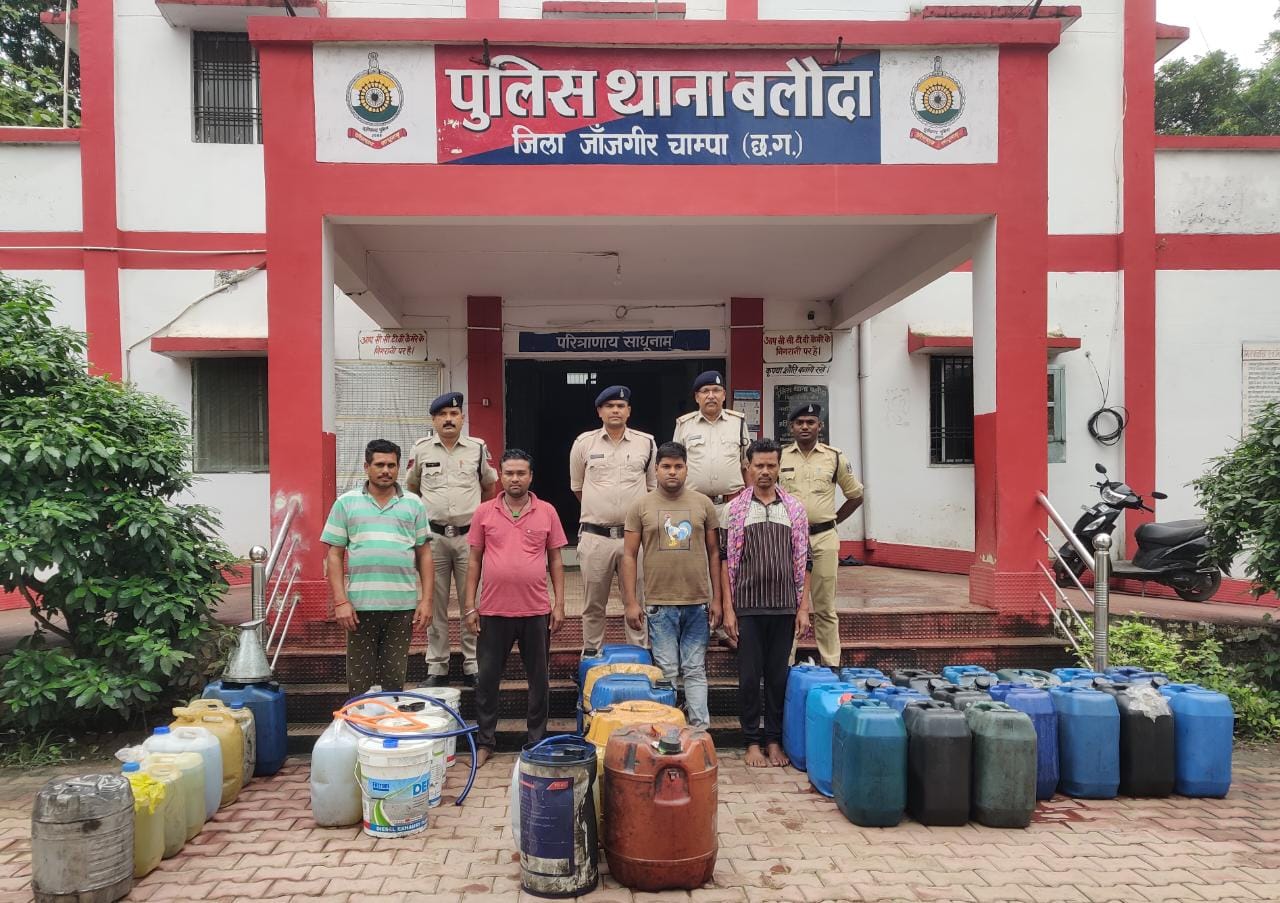 जांजगीर चाम्पा – जिले के बलौदा थाना क्षेत्र में लगातार ट्रकों से डीजल चोरी की शिकायतें मिल रही थी, जिस पर थाना बलौदा और साइबर सेल की टीम ने छापेमारी कर 4 आरोपियों को पकड़ा है, जो चाय दुकान की आड़ में डीजल चोरी का खेल खेल रहे थे। मिली जानकारी के अनुसार बलौदा थाने में अलग -अलग 04 मामलों में मेन रोड में खड़ी बड़ी वाहनों से डीजल की चोरी करने की शिकायत दर्ज कराई गई थी, जिसमें विशेष टीम जांजगीर व बलौदा पुलिस के द्वारा मुखबीर की सूचना पर रेड कार्यवाही किया गया, जहाँ आरोपी कृष्ण कुमार उम्र 45 वर्ष से 350 लीटर डीजल किमती 33,000/रूपये , संतोष उम्र 38 वर्ष से 260 लीटर डीजल किमती 25,000/रु, शत्रुहन उम्र 26 वर्ष से 280 लीटर डीजल किमती 28000/रूपये, विनोद कुमार उम्र 34 साल निवासी बलौदा से 300 लीटर डीजल किमती 28000/ जप्त किया गया है। सभी आरोपियों को गिरफ्तार कर न्यायिक रिमाण्ड पर भेज दिया गया है।
