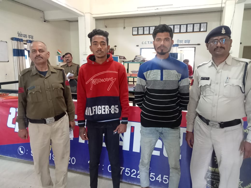 बिलासपुर – तारबाहर पुलिस ने 2 आदतन बदमाश आरोपियों को गिरफ्तार किया है जो कई लोगों से मारपीट, गाली गलौज और जान से मारने की धमकी देने के मामलों में फरार थे, पुलिस द्वारा गुंडागर्दी करने वालो पर लगातार नकेल कसने की कार्रवाई की जा रही है ताकि कानून व्यवस्था बनी रहे। मिली जानकारी के अनुसार प्रार्थी पंकज कुमार, पीयूस सूर्यवंशी, मुस्कान साहू एवं मनोरमा कुम्हार सभी से आरोपियों द्वारा अलग-अलग स्थानों पर मारपीट की घटना को अंजाम दिया गया हैं प्रार्थीयो द्वारा रिपोर्ट दर्ज कराया गया कि घटना स्थल रेल्वे कालोनी, डीपुपारा एवं भारत माता स्कूल के पास आरोपियों ने मारपीट कर गाली गलौच करते हुए, हाथ मुक्का से मारपीट कर जान से मारने की धमकी दिये है, जिसके बाद से आरोपी फरार हो गये है, प्रार्थीयो की रिपोर्ट पर विभिन्न धाराओं के तहत अपराध पंजीबद्ध कर विवेचना में लिया गया। जिले में इस तरह की अन्य घटनायें होने की सूचना पर पुलिस महानिरीक्षक एवं पुलिस अधीक्षक संतोष सिंह के निर्देश पर थाना प्रभारी तारबाहर के नेतृत्व में टीम गठित कर प्रकरण में आरोपियों की तलाश की जा रही थी, इसी दौरान आरोपी अंकुश यादव व पिन्टू यादव को रेल्वे कंस्ट्रक्शन कालोनी छोटा ग्राउंड तारबाहर से घेराबंदी कर पकड़ा गया जो अपराध करना स्वीकार किए है जिन्हें गिरफ्तार न्यायिक हिरासत में भेज दिया गया है। संपूर्ण कार्यवाही में थाना तारबहार के थाना प्रभारी निरीक्षक अनिल अग्रवाल, प्रआर सूरज तिवारी, आर अमित सिंह, गजानंद यादव, सुखदेव पालके रूपलाल चंद्रा, अरविंद अनंत का योगदान रहा ।