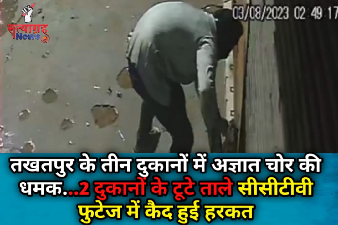 बिलासपुर – जिले के तखतपुर थाना क्षेत्र अंतर्गत मुख्य बाजार के मंडी चौक की 3 दुकानों में बीती रात अज्ञात चोर ने धावा बोला है, जहाँ 2 दुकानों का ताला टूटा है वही तीसरे दुकान में ताला तोड़ने की कोशिश हुई है। मिली जानकारी के अनुसार मंडी चौक के काम्प्लेक्स में बीती रात अज्ञात चोर ने एक के बाद एक 2 दुकानों के ताले तोड़कर नगदी सहित सामानों की चोरी को अंजाम दिया है साथ ही तीसरे पान दुकान में ताला तोड़ने की कोशिश हुई है। जिसमें आशीष मेडिकल स्टोर,