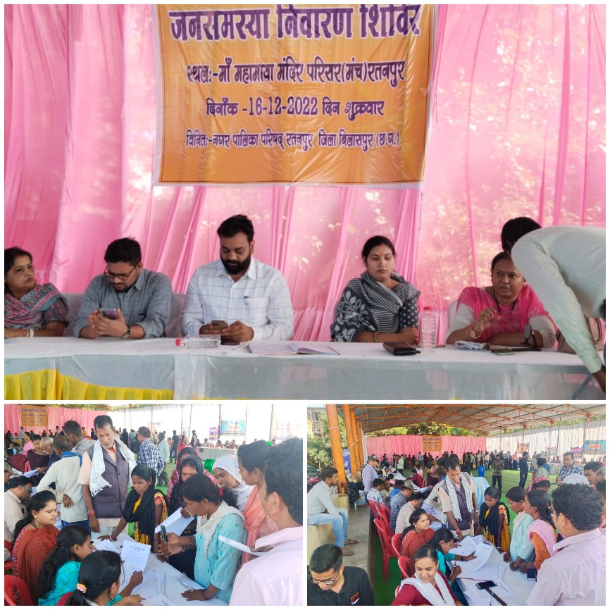 महामाया मंदिर परिसर मंच में शुक्रवार सुबह 11:00 बजे से शाम 5:00 बजे तक शिविर लगाया गया, जहाँ सभी विभागो के अधिकारी लोगों की समस्या सुनने व निराकरण करने के लिए मौजूद रहे। इस शिविर में बड़ी संख्या में आम नागरिक अपनी समस्या लेकर पहुचे।