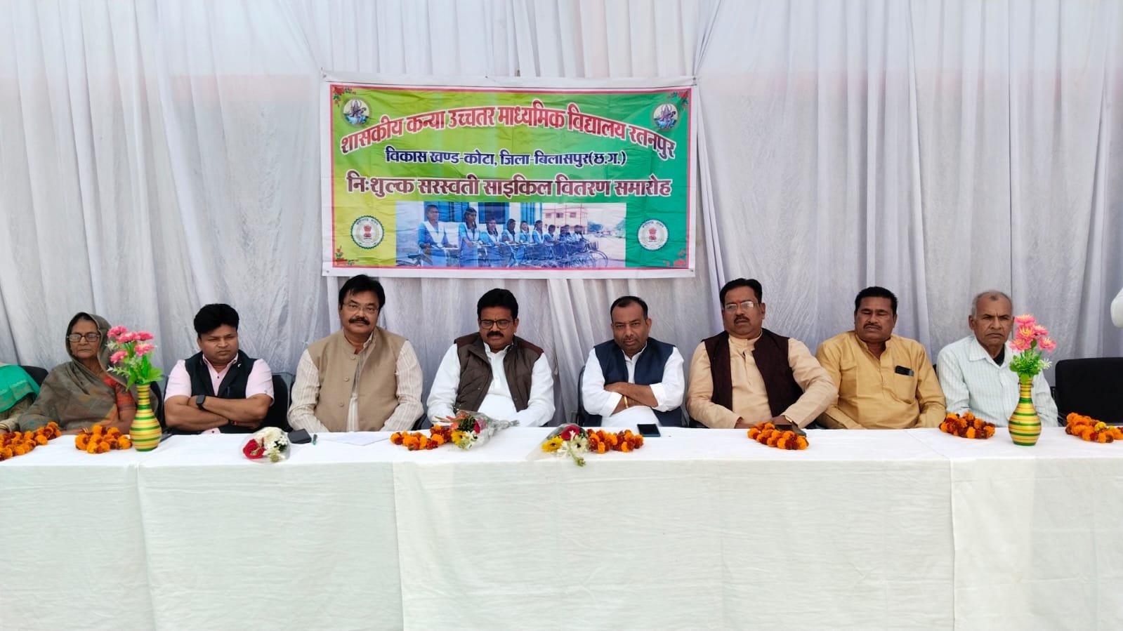 अध्यक्ष के रूप में अरुण सिंह चौहान अध्यक्ष जिला पंचायत बिलासपुर मौजूद रहे। इस कार्यकम में अतिथियों के द्वारा अध्यनरत 93 छात्राओं को निःशुल्क सरस्वती साइकिल वितरण किया गया। इस कार्यकम में प्रमोद नायक अध्यक्ष जिला सहकारी बैंक,सुभाष अग्रवाल