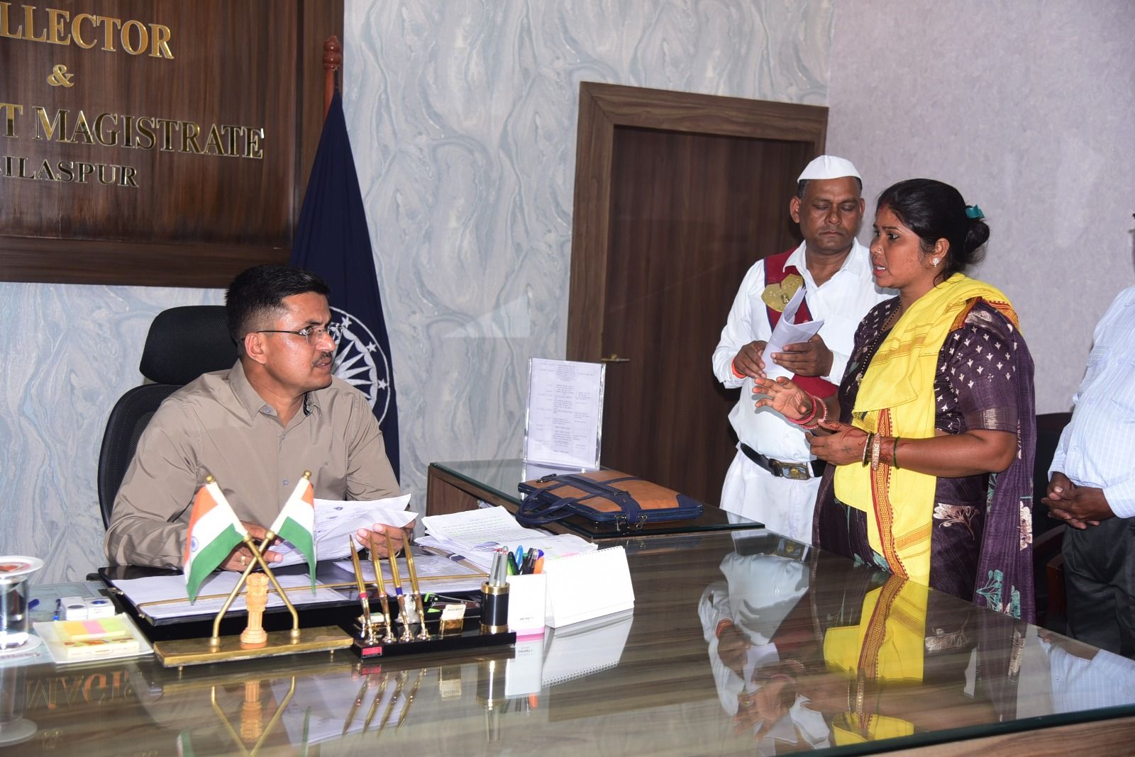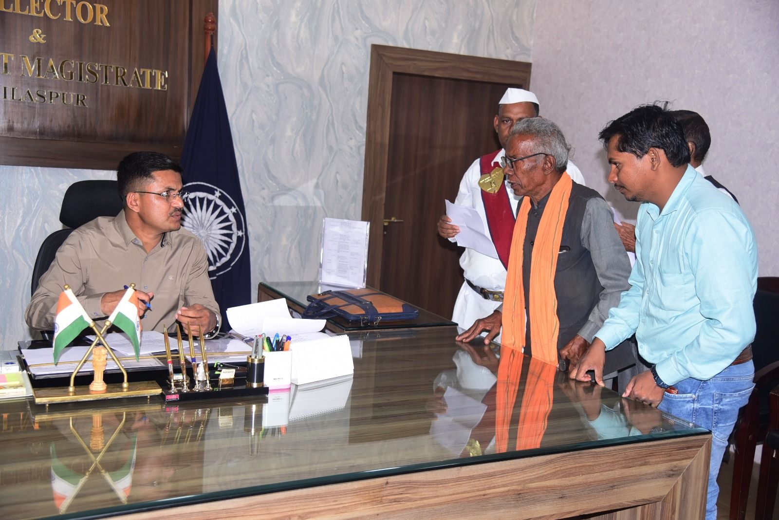 बिलासपुर -कलेक्टर अवनीश शरण ने आज साप्ताहिक जनदर्शन में दूर-दराज से आये लोगों की समस्याएं सुनी। कलेक्टर ने सभी की समस्याओं को इत्मीनान से सुना और निराकरण योग्य आवेदनों का मौके पर ही निराकरण किया। कलेक्टर ने संबंधित अधिकारियों को आवेदन भेजते हुए जल्द निराकरण करने के निर्देश दिए।