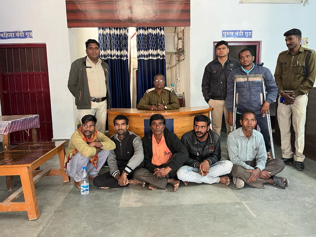 साहिल पाल पिता त्रिलोकी , जलेश्वर पाल, निरजंन साहू , ज्ञानचंद केवट , दिनकर सिंह नेताम , गजेद्र भार्गव , सुरेश श्रीवास का फौती प्रमाण पत्र के माध्यम से गिरफ्तार कर न्यायालय में पेश किया गया जहाँ से उन्हें जेल दाखिल कर दिया गया हैं ।