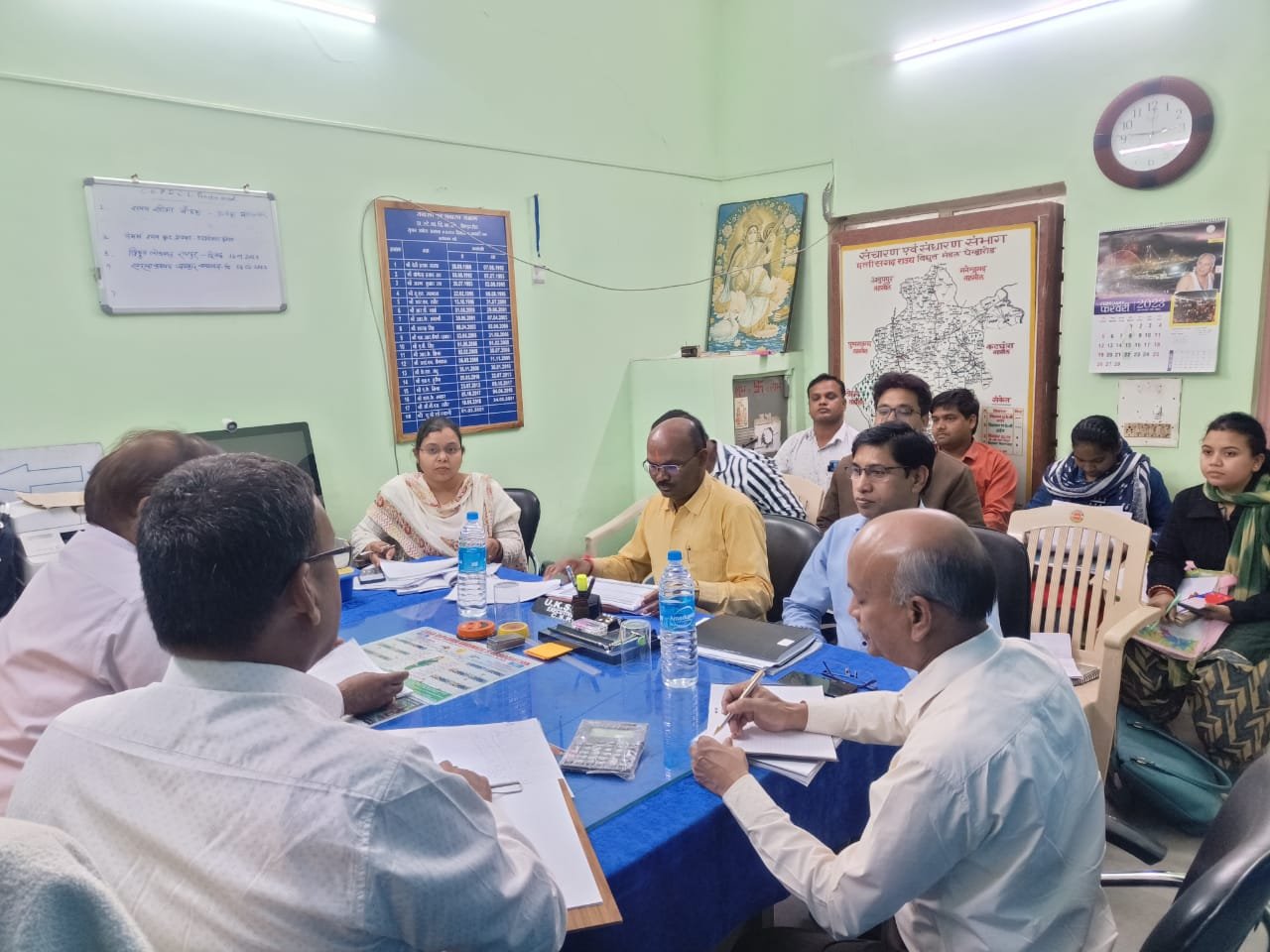 जहां श्री राव ने बकाया वसूली, लाईन लाॅस, मीटर रिप्लेशमेन्ट की प्रगति, ट्रांसफार्मर रिप्लेशमेंट, फेल ट्रांसफार्मरों की मरम्मत, नवीन कनेक्शन प्रदान करने, विद्युत चोरी की सघन जांच कर प्रकरण तैयार करने एवं विभिन्न महत्वपूर्ण विषयों की विस्तृत जानकारी हासिल की। कार्यालयों से प्राप्त जानकारी की समीक्षा करते हुए मैदानी अधिकारियों को पूरी सजगता के साथ बेहतर कार्य करने, लाइन लाॅस में कमी लाने एवं बकाया वसूली में तेजी लाने, विद्युत विस्तार हेतु किये जा रहे निर्माण कार्यों को समय-सीमा के भीतर पूर्ण करने के निर्देश दिए।