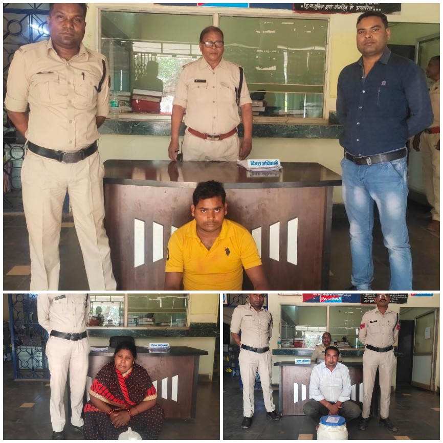 जिसके कब्जे से 4.6 कि.ग्रा. गांजा कीमती ₹46000 को जब्त किया गया है, इसी तरह दुकालू श्रीवास पिता सुखदेव श्रीवास उम्र 48 साल निवासी बिल्लीबंद से 11 लीटर और सविता मोहले पति ओमप्रकाश मोहले उम्र 40 साल निवासी मोहंदी से 08 लीटर कुल 19 लीटर अवैध महुआ शराब को जप्त किया गया है।