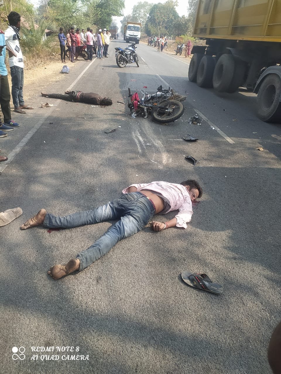 भी घूमने सराईपाली आ रहा था, जब दोनों बाइक सवार युवक दारसागर गांव के पास पहुंचे थे। इसी दौरान उनकी बाइक क्रमांक सीजी 10 बीजे 2107 तेज रफ्तार ट्रक क्रमांक एमपी 18 एच 5270 से जा टकराई। हादसे में चंद्रशेखर और पंचराम की मौके पर ही मौत हो गई। घटनास्थल पर पहुंची पुलिस ने बाइक नंबर के आधार पर चंद्रशेखर और पंचराम की पहचान कर ली। फिलहाल पुलिस ने शव को मरच्यूरी भेज दिया है। मृतक के परिजनों को घटना की सूचना देकर मौके पर बुलाया गया है। उनकी मौजूदगी में शव का पीएम कराया जाएगा। वही पुलिस ने दोनों वाहनों को जब्त कर लिया है और फरार ट्रक चालक की तलाश की जा रही है।