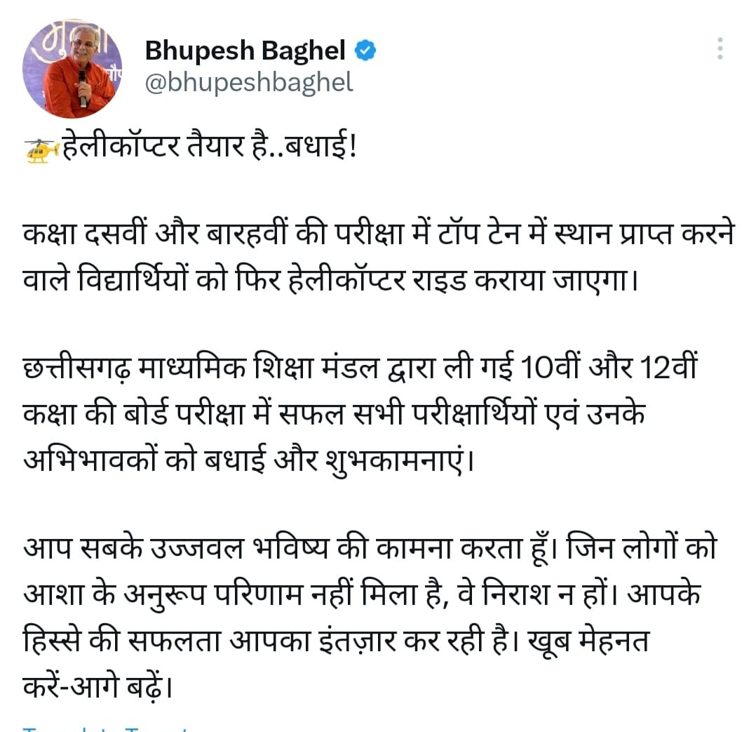 इसके साथ ही उन्होंने सभी विद्यार्थियों को परिणाम में अपेक्षित सफलता न मिलने पर निराश नही होने की बात भी कही है और उन्हें भरोसा दिलाया है कि आपकी हिस्से की सफलता आपका इंतजार कर रही है, मेहनत करे और आगे बढ़े।