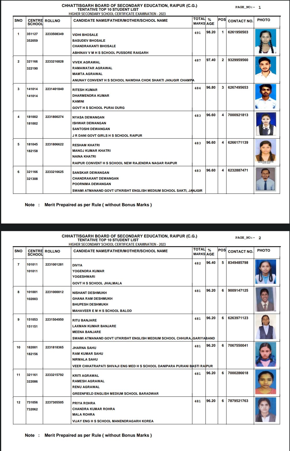 रायपुर – बुधवार को स्कूल शिक्षा मंत्री प्रेम साय सिंह ने बोर्ड परीक्षा के परिणाम जारी किए जिसमें 10 वीं टॉप टेन मेरिट लिस्ट में जशपुर के आत्मानंद स्कूल के छात्र राहुल यादव ने प्रथम स्थान हासिल किया है, इसी तरह 12 वीं में रायगढ़ की विधि भोसले ने लिस्ट में पहला स्थान पाया है। इनके अलावा बड़ी संख्या में छात्र छात्राओं ने इस लिस्ट में जगह बनाई है। जिन्हें मुख्यमंत्री भूपेश बघेल ने अपनी शुभकामनाएं दी है और फिर से सभी सफल विद्यार्थियों को हेलीकॉप्टर की सैर कराने का मौका दिया है।