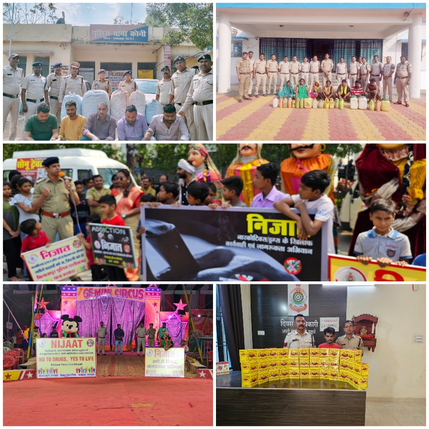 पुलिस अधीक्षक बिलासपुर संतोष कुमार सिंह के निर्देशानुसार अतिरिक्त पुलिस अधीक्षक शहर राजेंद्र जायसवाल, अतिरिक्त पुलिस अधीक्षक ग्रामीण राहुल देव शर्मा के मार्गदर्शन में बिलासपुर के सभी थाना अंतर्गत अवैध नशा के कार्य में संलिप्त लोगों के विरुद्ध ताबड़तोड़ तरीके से कार्यवाही की गई है। फरवरी माह से शुरू किए गए अवैध नशे के खिलाफ कार्यवाही और जागरूकता अभियान निजात के तहत सिर्फ दो माह में ही ताबड़तोड़ कार्यवाही करते हुए कुल 1303 लोग गिरफ्तार किए गए है, जिनमें से गैर-जमानतीय प्रकरणों और नशे से जुड़े किए गए प्रतिबंधात्मक प्रकरणों में कुल 228 आरोपी जेल भेजे गए हैं।