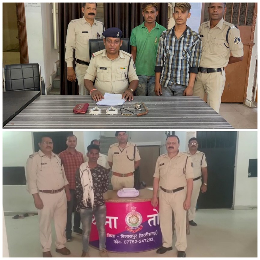 बिलासपुर – न्यायधानी में बढ़ते क्राइम के ग्राफ के बीच स्थानीय पुलिस अपराधियों पर अपना शिकंजा कसने लगी है। इसी कड़ी में दो अलग अलग मामलों में स्थानीय पुलिस ने तीन आरोपियों को गिरफ्तार किया है। जिसमे एक गांजा तस्कर तो दो चोर शामिल है। जिसे तोरवा और सिरगिट्टी पुलिस ने गिरफ़्तार किया है।