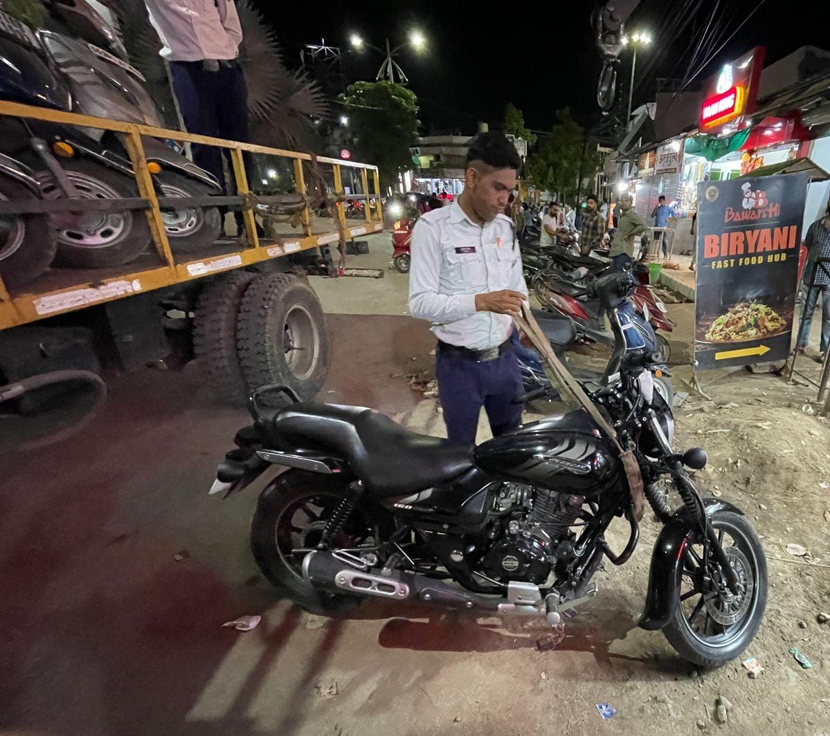 बिलासपुर – मॉडिफाइड साइलेंसर के खिलाफ कार्यवाही के बाद अब यातायात पुलिस ने शहर में खड़े बेतरतीब वाहनों के खिलाफ चालानी कार्रवाई की है जिसके तहत मंगलवार को 70 वाहनों के खिलाफ कार्रवाई करते हुए 19 हजार का चालान काटा है। मिली जानकारी के अनुसार बिलासपुर, पुलिस अधीक्षक संतोष सिंह ने पूर्व में ही यातायात पुलिस को निर्देशित किया था कि शहर की सुगम यातायात व्यवस्था हेतु नो पार्किंग पर विशेष कार्यवाही की जाए,