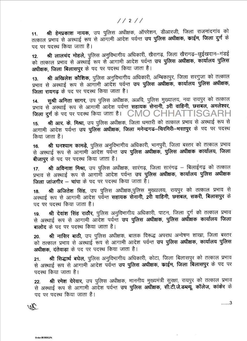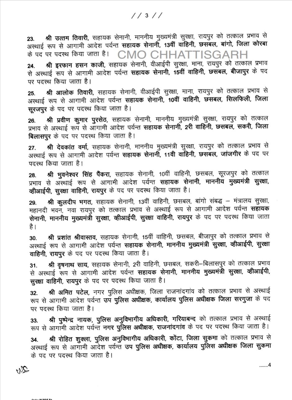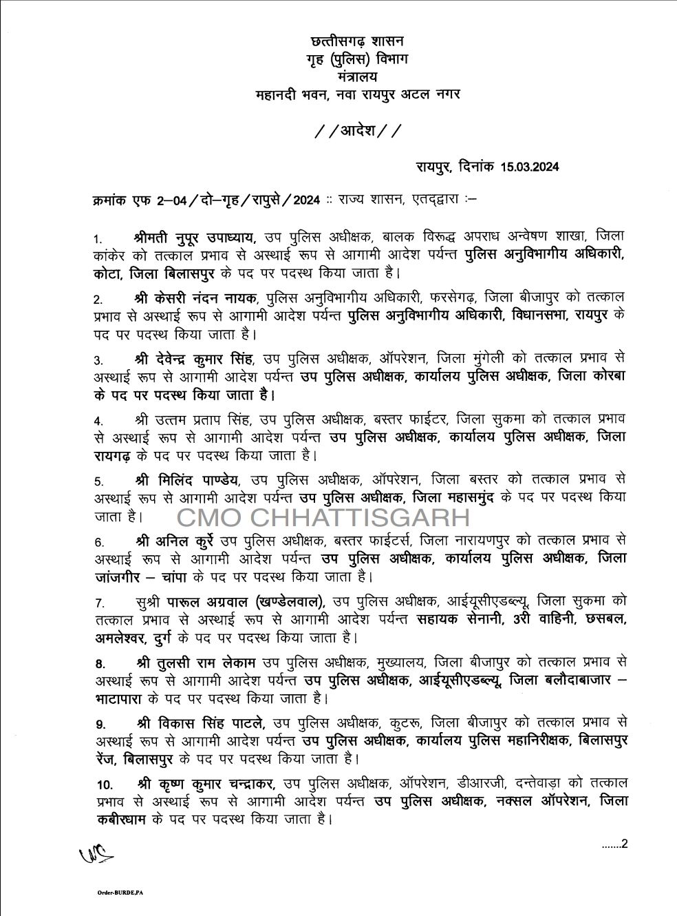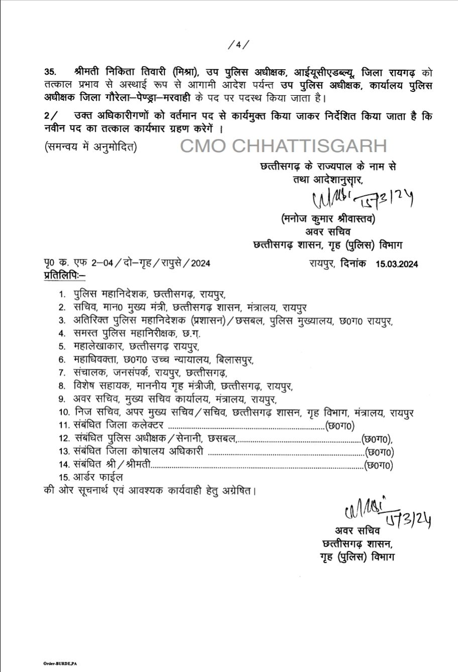 रायपुर – गृह विभाग ने अब प्रदेश में तैनात 35 उप पुलिस अधीक्षकों का तबादला किया है, जिन्हें विभिन्न जिलों में तैनात किया गया है देखिए आदेश…